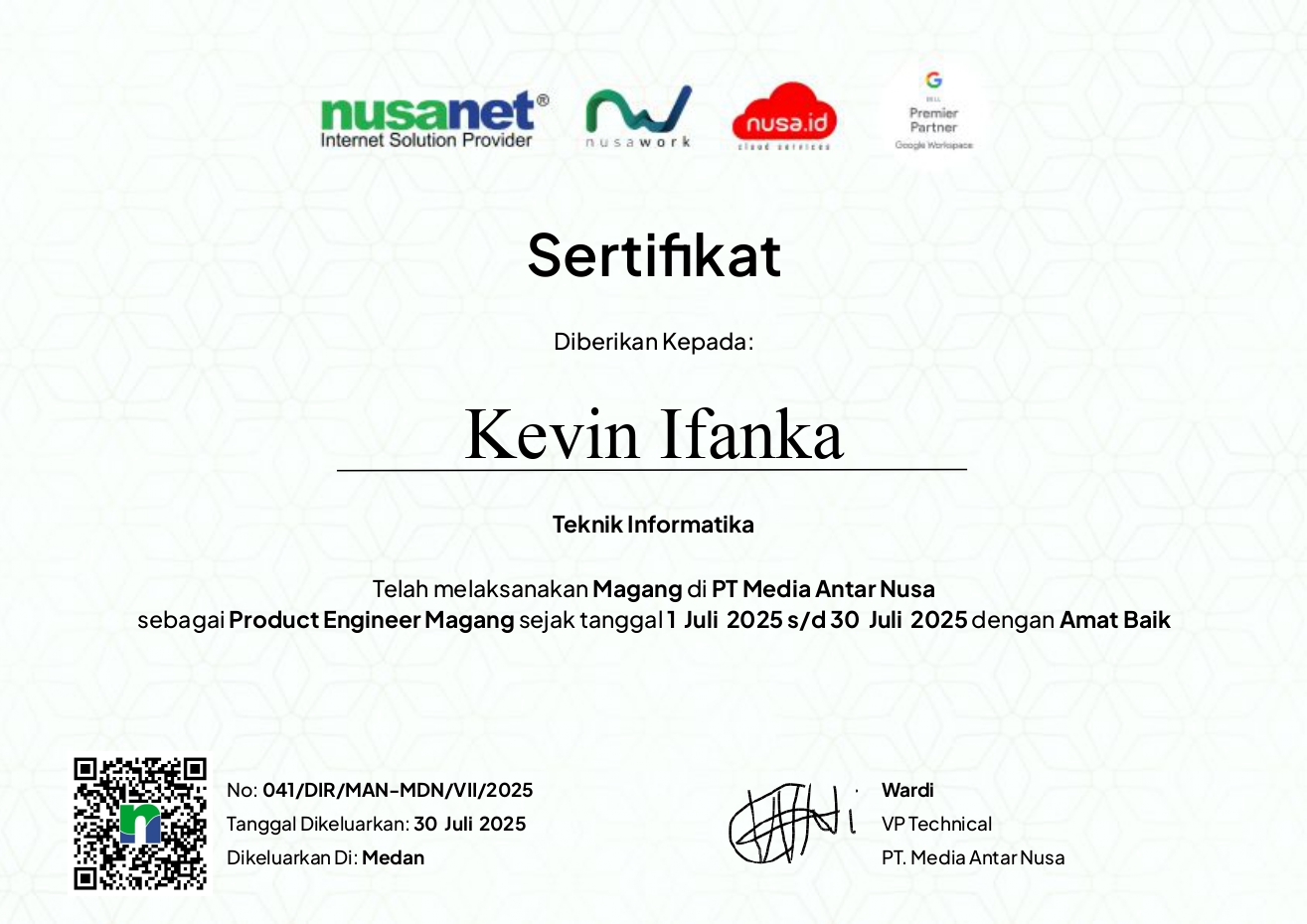 Tanggal Sertifikat: 30 Juli 2025