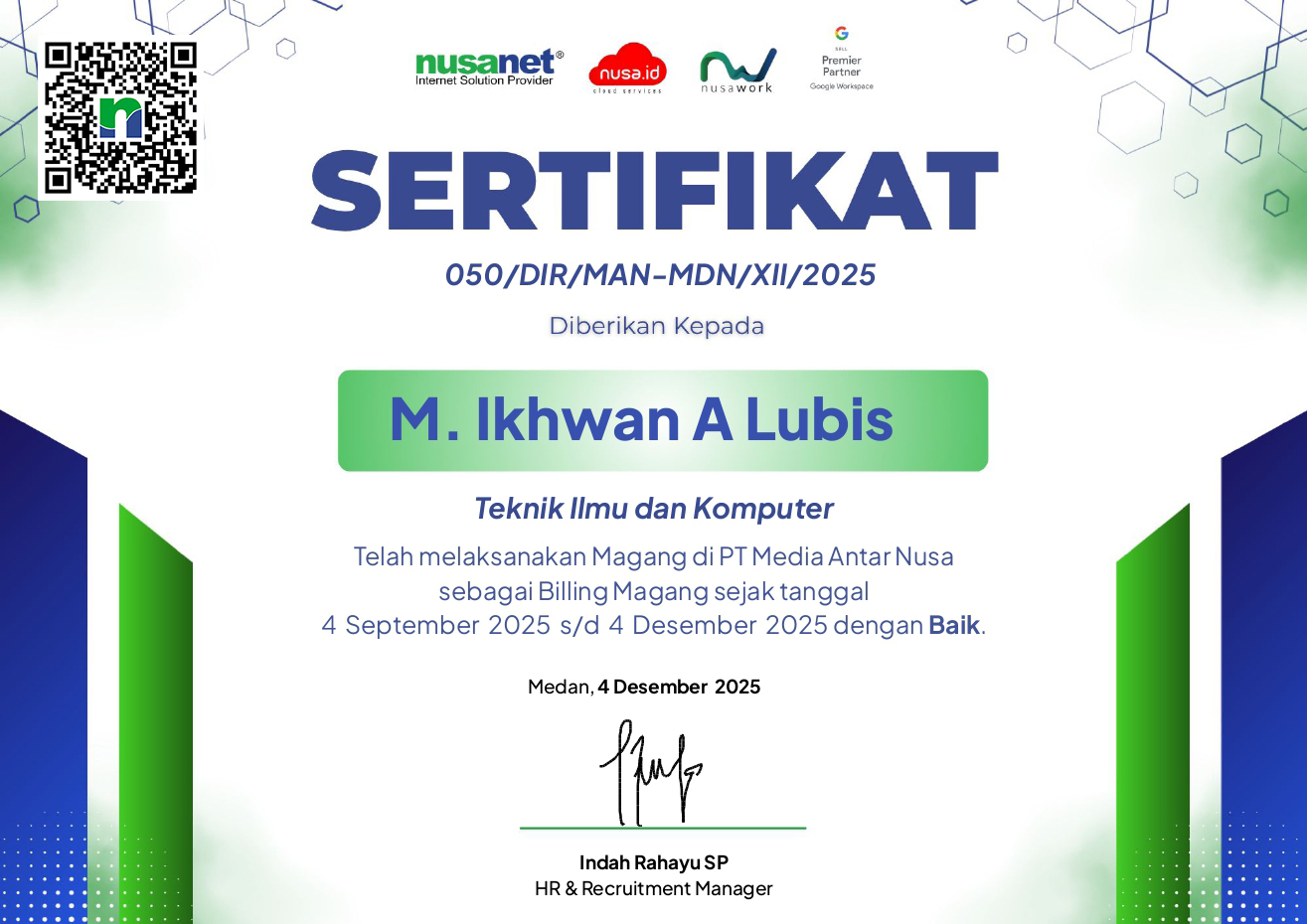 Tanggal Sertifikat: 4 Desember 2025